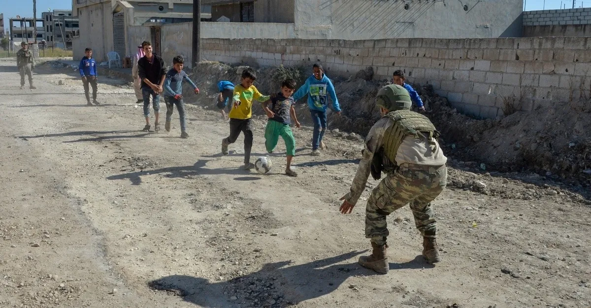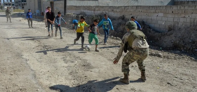 Barış Pınarı Harekatı bölgesinde görev yapan Türk askeri, yaşamın normale döndürülmesi çalışmaları kapsamında, geçirdikleri zor günleri unutmaları için Rasulayn'daki çocukların oyunlarına eşlik etti.