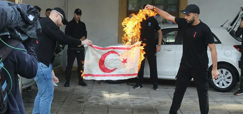 Son dakika: KKTC bayrağı yakan Rumların kimlikleri tespit edildi