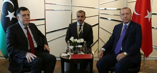Almanya Başbakanı Angela Merkel'in davetine icabetle Libya konusunda gerçekleştirilen zirve için bulunduğu Berlin'de resmi temaslarını sürdüren Erdoğan, Fayiz es-Serrac ile görüştü.