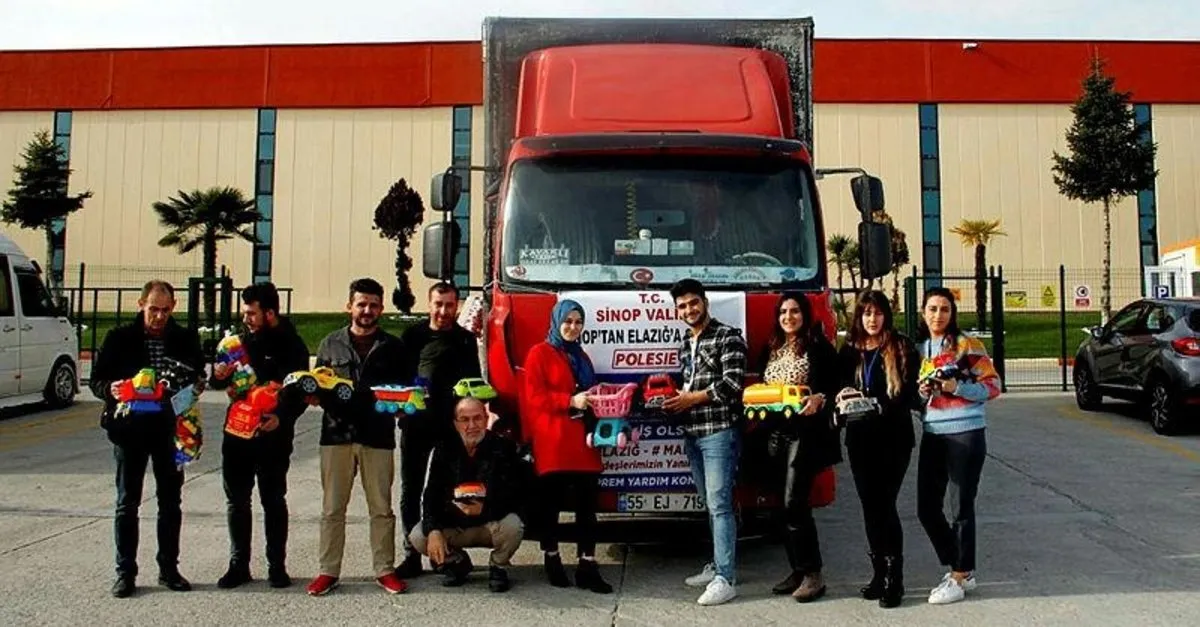Elazığ’ın Sivrice ilçesinde 6,8 büyüklüğündeki depremin ardından Türkiye’nin dört bir yanından vatandaşlar depremzedelere yardım için harekete geçti. Sinop'tan deprem bölgesindeki çocuklara bir tır dolusu oyuncak gönderildi.