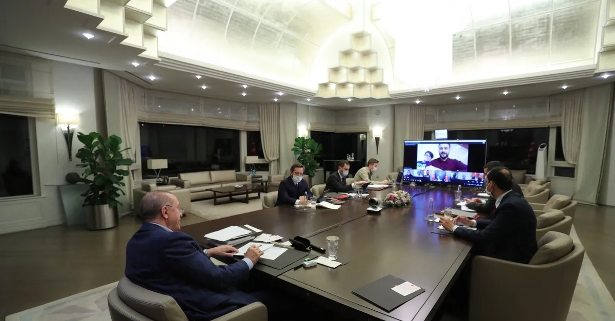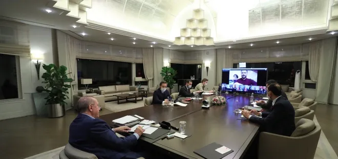 Paylaşımda Erdoğan'ın AK Parti'lilerle videokonferans yöntemiyle görüştüğü toplantıdan fotoğraf karesine yer verildi.
