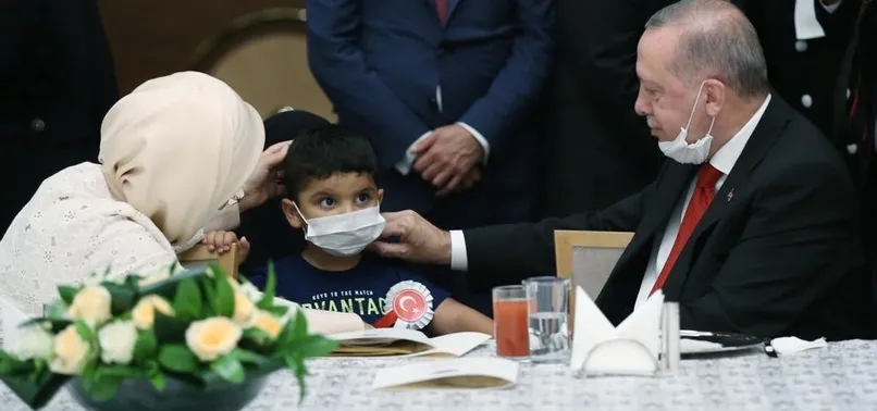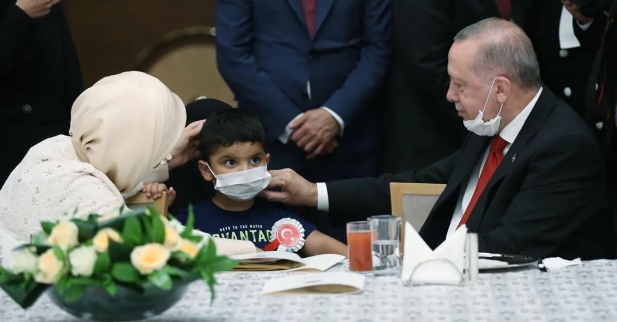 Emine Erdoğan, paylaşımında Cumhurbaşkanlığı Külliyesi'nde düzenlenen 15 Temmuz Şehitleri Anma Programı'nda bir şehit çocuğunun da bulunduğu fotoğrafa yer verdi.