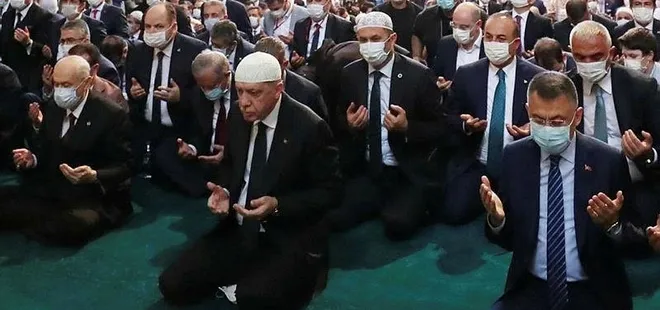 AYASOFYA Camisi'nde kılınan 86 yıl sonraki ilk Cuma namazının ardından Başkan Erdoğan ve MHP Genel Başkanı Devlet Bahçeli anlamlı bir ziyaret gerçekleştirdi. Erdoğan ve Bahçeli, Fatih Sultan Mehmet Han'ın türbesini ziyaret etti. Erdoğan girişte yaptığı açıklamada "Gayretlerimiz neticesiyle, Yargının da hamdolsun hakikati görmesiyle sona erdirdik. Artık Ayasofya aslına döndü, camiydi tekrar cami oldu. Şimdi ilanihaye cami olarak tüm inananlara hizmete devam eder, tüm insanlığın bir kültür mirası olarak da gezilir. Gerçek sahibi Fatih Sultan Mehmet Han'ın kabrini bir ziyaret edelim istedik" dedi.