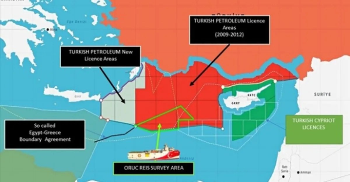 Oruç Reis sismik araştırma gemisi, Doğu Akdeniz'de Navtex ilan edilen bölgede çalışmalarına başladı. Dışişleri Bakanlığı da Yunanistan'ın iddialarını çürütecek bir harita paylaştı. Haritada, Türkiye'nin deniz yetki alanları gösterildi.