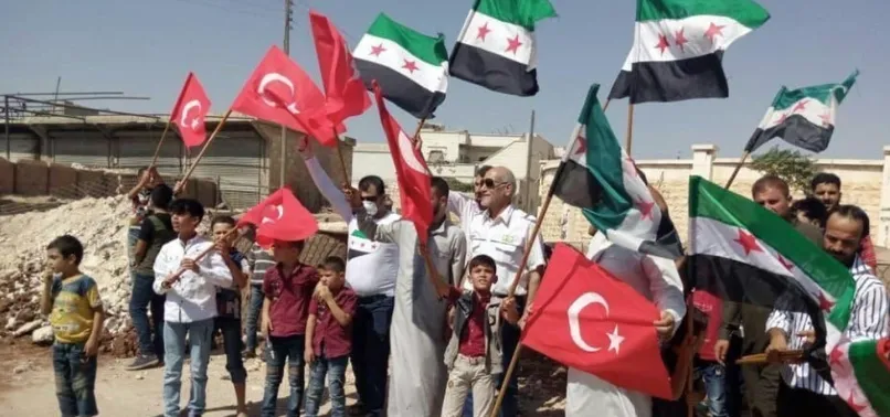 Suriye'nin kuzeybatısındaki İdlib kentinde halk, Türkiye'nin bölgedeki askeri varlığını destekleyen gösteriler düzenledi.