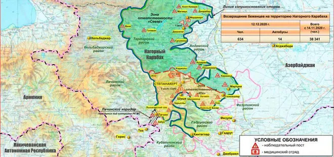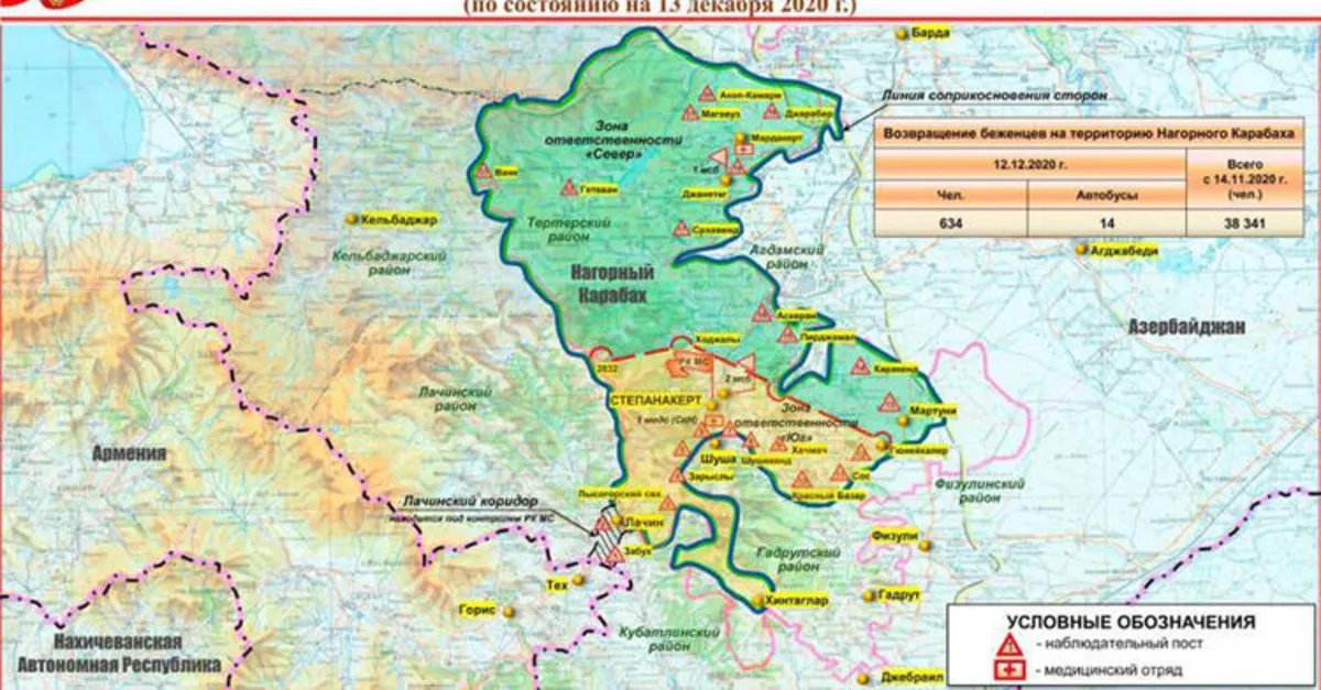 Azerbaycan, Ermenistan işgalindeki Karabağ'ı kurtardı. Dünyanın yakından takip ettiği savaştan Azerbaycan galip ayrıldı, yapılan anlaşma sonrası bölgeye Rus askerleri gönderildi. Rus askerlerinin güvenliği sağlaması için gönderilen bölge için yeni bir harita yayımlandı. Rusya'nın yeni haritasındaki işaretler dikkat çekti.