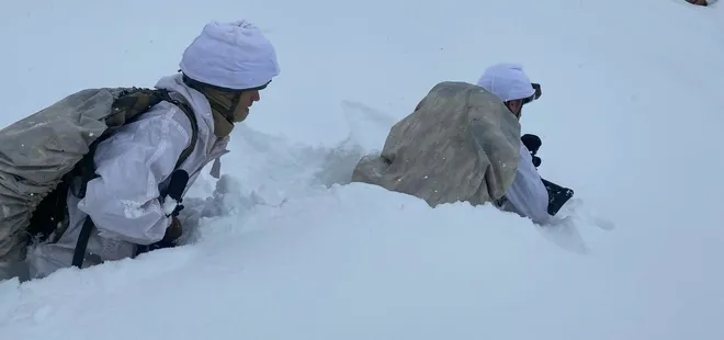Türk askeri Hakkari'nin yüksek ve karlı dağlarında dondurucu soğuklara rağmen görevine devam ediyor. Milli Savunma Bakanlı tarafından yapılan paylaşımda "Asil milletimizin emrinde, görevimizin başındayız..." ifadelerine yer verildi.