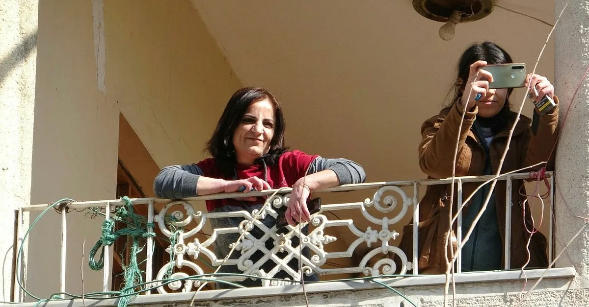 Burada annelerin sitemlerini il binasının balkonunda izleyen HDP'li kadın, gülerek karşılık verdi.
