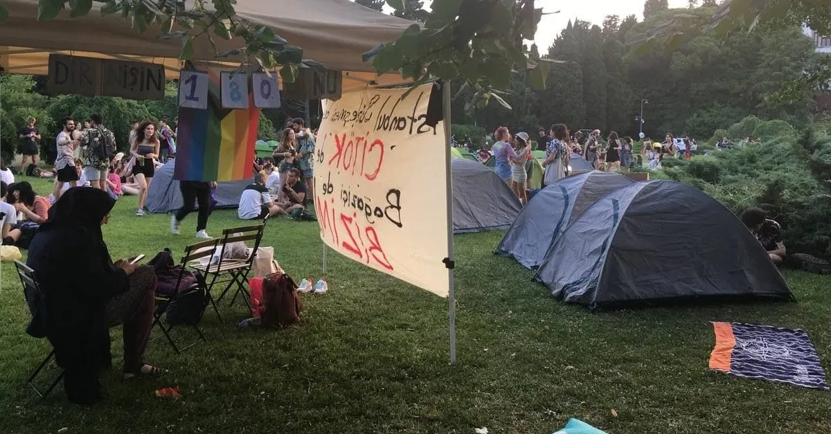 Kamusal ortak kullanım alanı olan Güney Kampüs Meydanında toplu etkinlikler yapılması için izin alınması gerekiyor. Pandemi riskine rağmen küçücük çadırlarda birden fazla öğrencinin iç içe kalması da endişe yarattı.