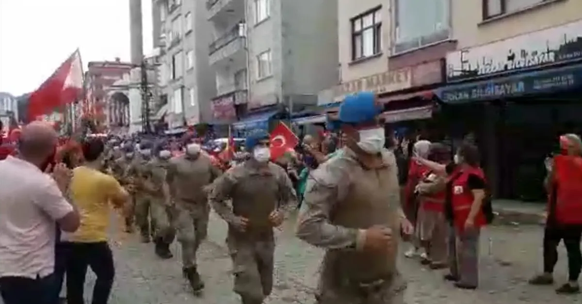 Dağları terörden Arhavi'yi çamurdan temizleyen komandolar, AK Parti İlçe Teşkilatı tarafından vatandaşlara dağıtılan Türk bayrakları, tulum ezgileri ve "En büyük asker bizim asker" tezahüratları ile uğurlanırken, Artvin Valisi Yılmaz Doruk ve İl Jandarma Komutanlığı yetkilileri askerlere hizmetleri için teşekkür etti.