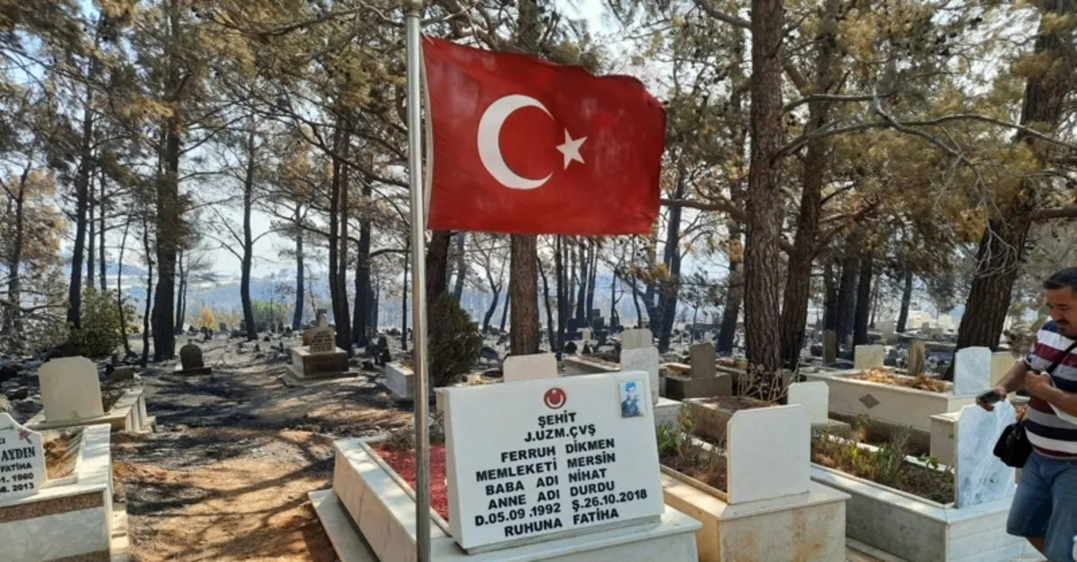 Tüyleri diken diken eden olay! Mersin'deki yangında şehit kabri ve Türk bayrağı yanmadı
