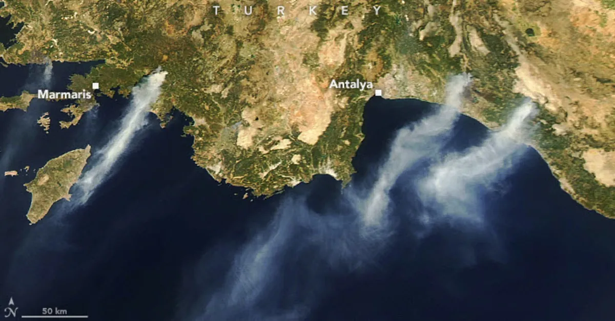 Amerikan Havacılık ve Uzay Dairesi'nden (NASA) Türkiye'de sürmekte olan orman yangınları ile ilgili bir paylaşım geldi.