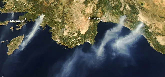 NASA'nın resmi sitesinde yer alan yazıda "Şiddetli bir sıcak hava dalgasının ve aylarca süren kuru havanın ortasında Türkiye, son yılların en kötü orman yangınlarından bazılarıyla karşı karşıya" ifadelerine yer verildi.