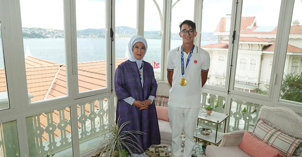 Emine Erdoğan olimpiyat şampiyonu Mete Gazoz'u kabul etti