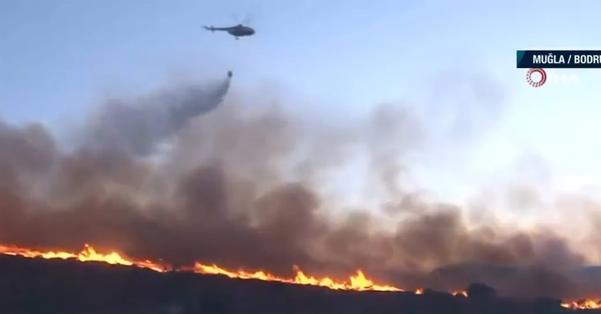 Muğla'nın Bodrum ilçesindeki otluk ve makilik alanda çıkan yangın, rüzgarın etkisiyle yerleşim yerlerine doğru ilerlemeye başladı. Yaklaşık 200 metre kadar yerleşim yerlerine yaklaşan yangını söndürmek için havadan ve karadan müdahalede bulunuldu.