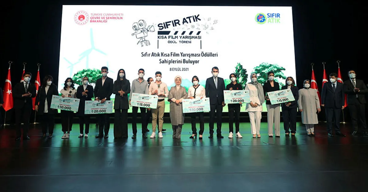 Çevre ve Şehircilik Bakanlığı Cumhurbaşkanlığı Külliyesi Kongre ve Kültür Merkezi'nde Sıfır atık kısa film yarışması ödül töreni düzenledi. Törende konuşan Emine Erdoğan,Yarışmaya 214 başvuru yapıldığına işaret ederken, "Ödül alsın, almasın, böyle önemli bir konu için emek harcayan her gencimiz, benim için birincidir. Çevre konularına karşı duyarlılığınız tabiatın umududur. Dünya hepimizin ortak evidir ama gelecek yalnızca sizlerindir. O nedenle geliştireceğiniz her projede sizinle birlikte olduğumu bilmenizi isterim" diye konuştu.
