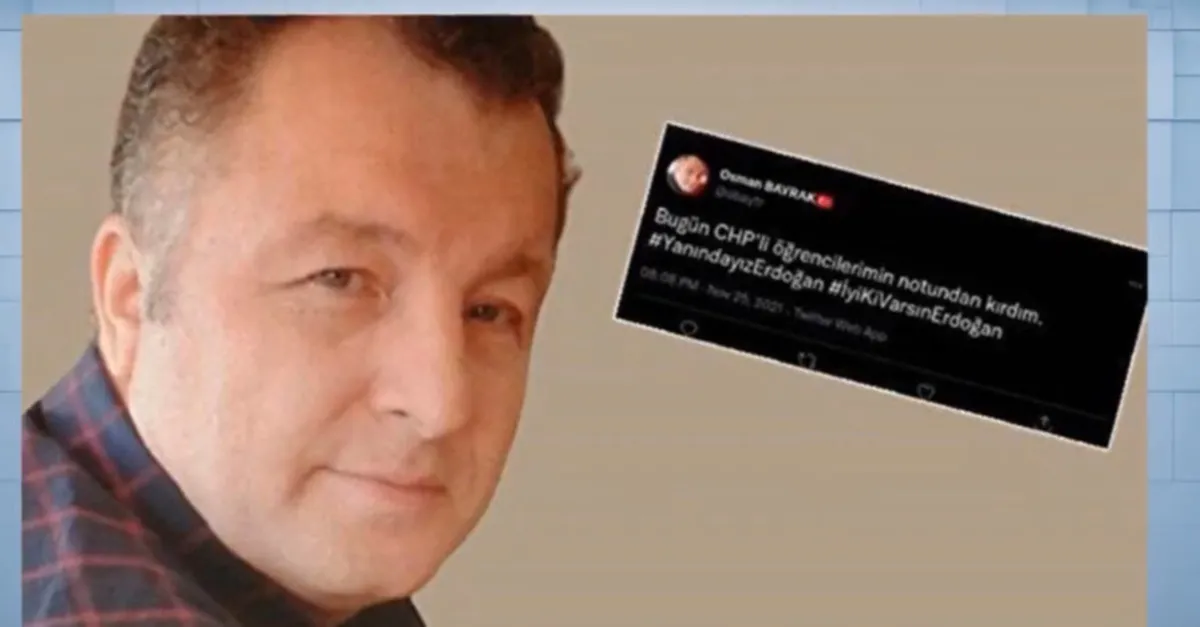 Trabzon'da fizik öğretmeni olan Osman Bayrak'ın yaptığı iddia edilen paylaşımda, "Bugün CHP'li öğrencilerimin notundan kırdım" ifadeleri yer alıyor ve Başkan Erdoğan'a destek veriliyordu.