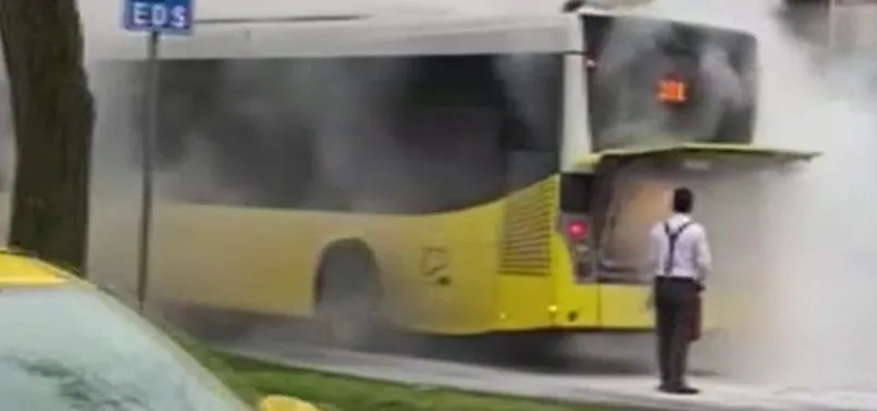 Eyüpsultan'da yolda kalan İETT otobüsünün motorundan yoğun duman çıktı. O anlar bir vatandaşın cep telefonu kamerasına anbean yansıdı.