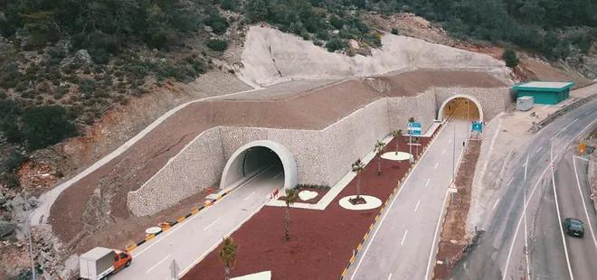 Ulaştırma ve Altyapı Bakanı Adil Karaismailoğlu, Dışişleri Bakanı Mevlüt Çavuşoğlu'nun kurdelesini kestiği, Akdeniz Sahil Yolu üzerindeki tünel, aynı zamanda Antalya'yı Ege ve İç Anadolu'ya bağlıyor.