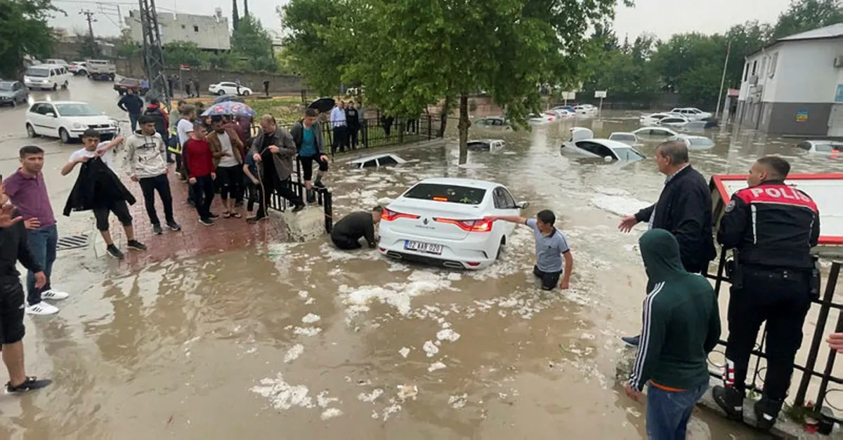 Adıyaman'da sağanağın ardından biriken su nedeniyle bazı araçlar zarar gördü, okulda mahsur kaldığı belirtilen iki kadın, kadınlardan birinin oğlu tarafından kurtarıldı.