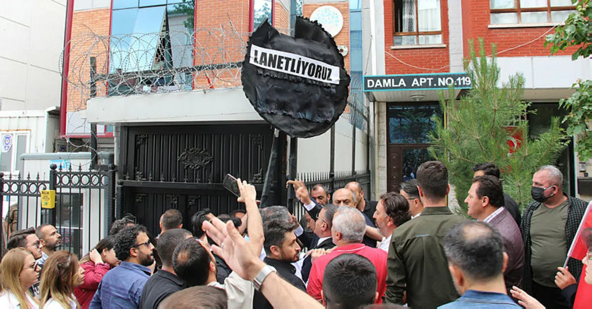 Şehit aileleri ve gaziler, İstanbul Kadıköy'de gösteri esnasında polise yumruk atan HDP milletvekili Salihe Aydemir'i protesto etmek için HDP Genel Merkezi önüne siyah çelenk bıraktı.