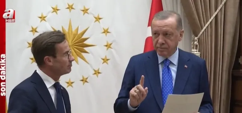İsveç Başbakanı Kristersson, yıllar önce Türkiye ile İsveç arasında yapılan "birbirlerinin güvenliği korumaya yönelik" anlaşmanın metnini Başkan Erdoğan'a sundu.