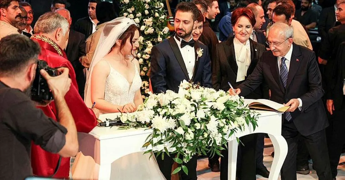 Kılıçdaroğlu ve Akşener, Mert Karalar ile Betül Özen çiftinin nikah şahitliğini yaptı. Karalar, nikahı kıydıktan sonra cüzdanı önce Akşener'e verdi. Meral Akşener'in Kılıçdaroğlu'na uzattığı cüzdanı CHP Genel Başkanı da Betül Özen'e verdi.