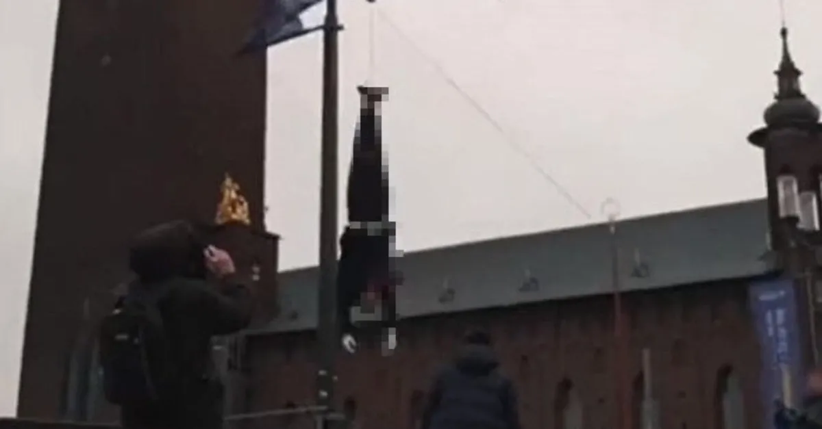 Dünyanın gündeminde İsveç'in başkenti Stockholm'de Başkan Recep Tayyip Erdoğan'ı hedef alan alçak eylem var. Stockholm'da bulunan tarihi belediye binasının önünde, Başkan Erdoğan'a benzetilen bir maket bir direğe ayaklarından asıldı. Çirkin olayın gerçekleştiği anları kayıt altına alan PKK destekçileri, eylemi terör örgütü bağlantılı sosyal medya hesaplarından da paylaştı.