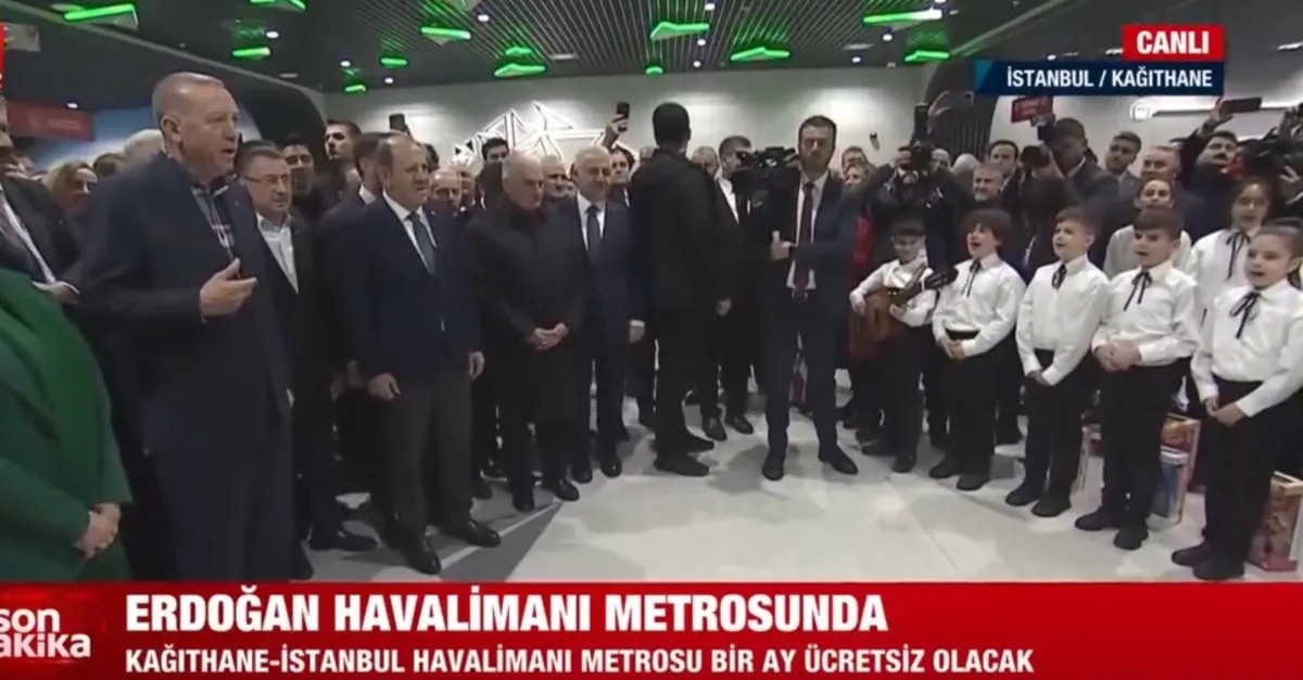 Başkan Recep Tayyip Erdoğan, Kağıthane-İstanbul Havalimanı Metrosu'nun açılışına katıldı. Başkan Erdoğan'ı tören sonrası istasyonda çocuk korosu karşıladı. Minikler Başkan Erdoğan'a "Bana her şey seni hatırlatıyor", "Uzun ince bir yoldayım" ve "Yollarda bulurum seni" şarkılarını söylediler.
