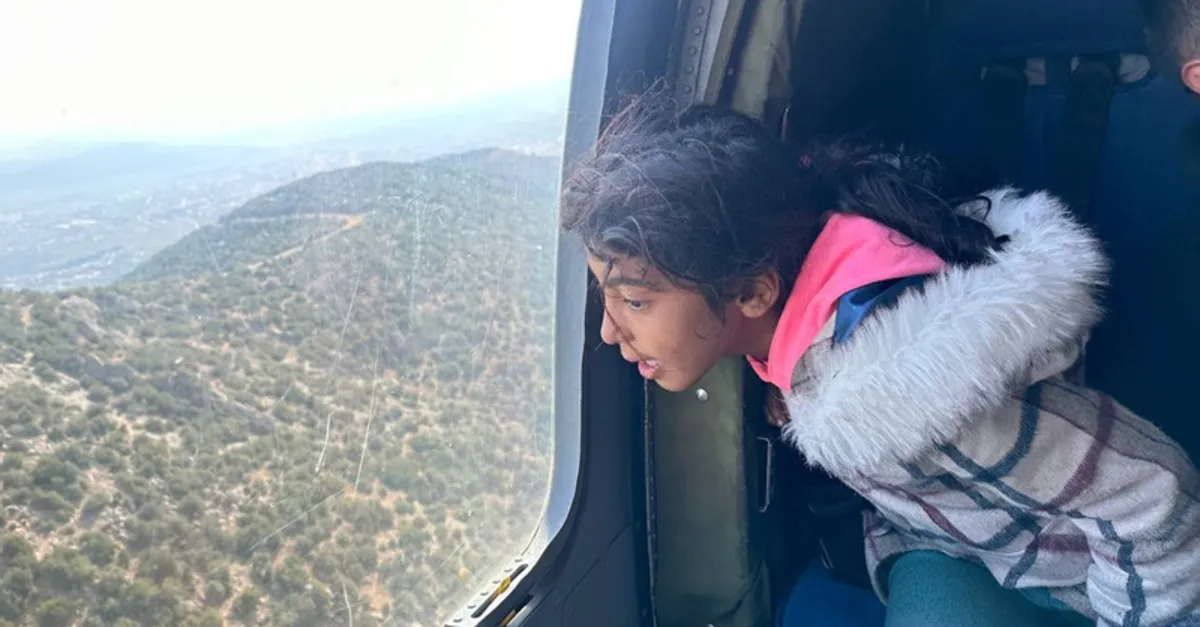 Kurum, isteklerini geri çevirmediği çocukları, alan incelemeleri için kullandığı Jandarma Genel Komutanlığına ait helikoptere bindirdi.