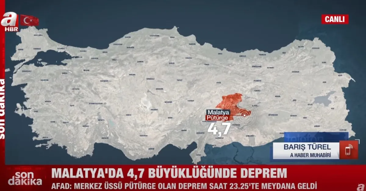 AFAD, Malatya'nın Pütürge ilçesinde 4.7 büyüklüğünde bir deprem meydana geldiğini açıkladı. Depremin derinliği 7 kilometre olarak ölçüldü ve çevre illerden de hissedildi.