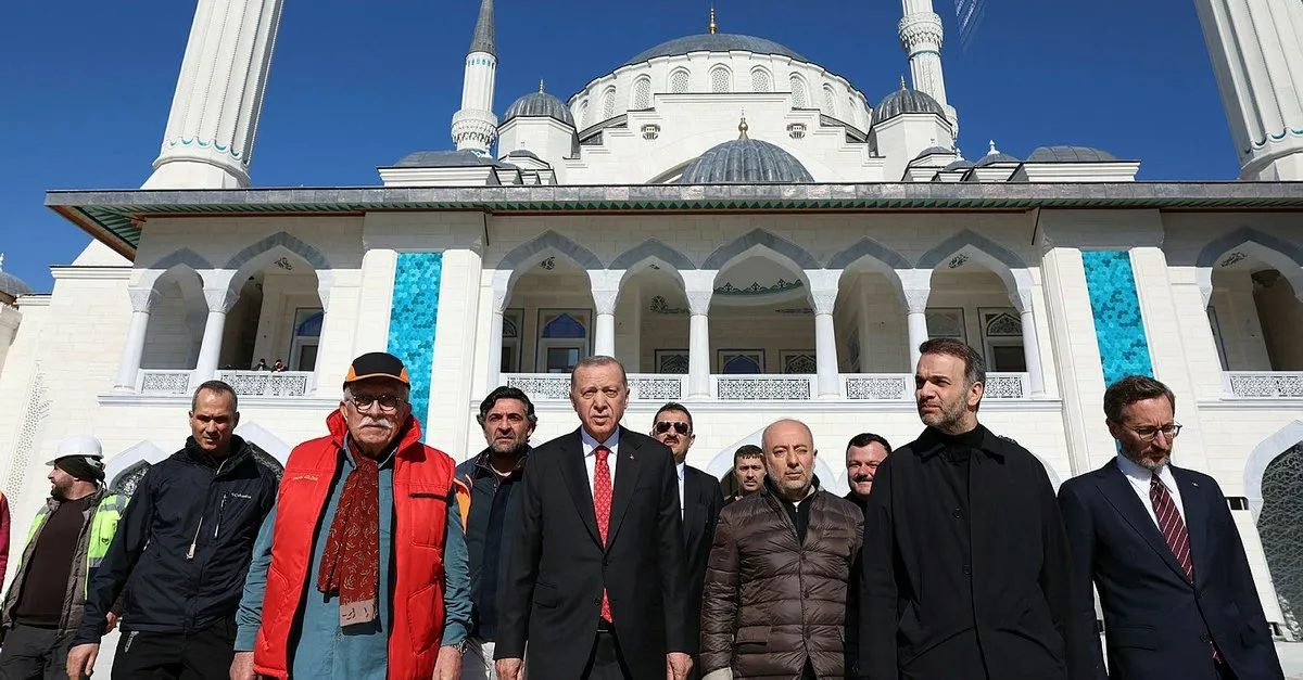 Atatürk Kültür Merkezi'ndeki toplantının ardından, Huber Köşkü'ne gitmek için buradan ayrılan Erdoğan, Beşiktaş Levent'teki Barbaros Hayrettin Paşa Camii'nde incelemelerde bulundu.