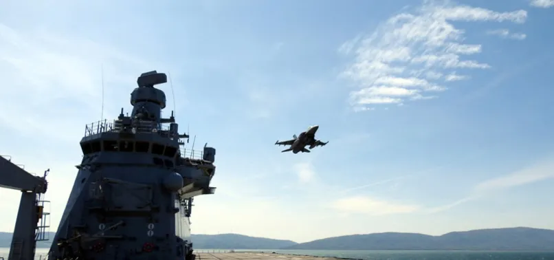 Türkiye'nin ilk yerli uçak gemisi TCG Anadolu, Marmara Denizi'nde F16'ların eğitim uçuşuna katıldı.
