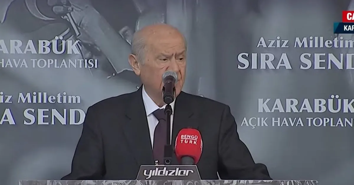 Partisinin Karabük Kemal Güneş Caddesi'nde düzenlediği "14 Mayıs'ta Aziz Milletim Sıra Sende" temalı açık hava toplantısında konuşan Bahçeli, Cumhurbaşkanlığı ve 28. Dönem Milletvekilliği Genel Seçimleri'nin ülkenin dirliğine, milletin birliğine, insanın huzur ve refahına hayırlı ve kalıcı sonuçlar getirmesini diledi.