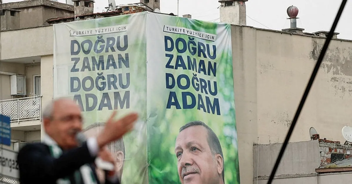 Kılıçdaroğlu'nun konuşma yapacağı alanda yer alan dev "Türkiye Yüzyılı İçin Doğru Zaman Doğru Adam" mesajlı Başkan Erdoğan pankartı yer aldı.
