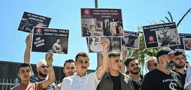 CHP’li İBB’nin Eyüpsultan’da açtığı rezil sergiye protesto! LGBT propagandası, Gezi güzellemesi ve İslam’a hakaret içerikli tablolar…
