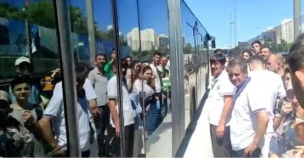Görevliler, can güvenliği ve trafik akışını sağlamak için yolcuları metrobüs yolunun kenarında beklemeleri yönünde uyardı.