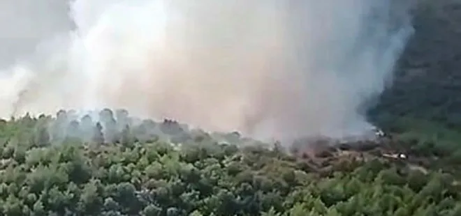 İhbar üzerine bölgeye, İzmir Orman Bölge Müdürlüğüne bağlı 9 uçak, 11 helikopter, 25 arazöz, 11 su ikmal aracı ile 5 dozer sevk edildi.
