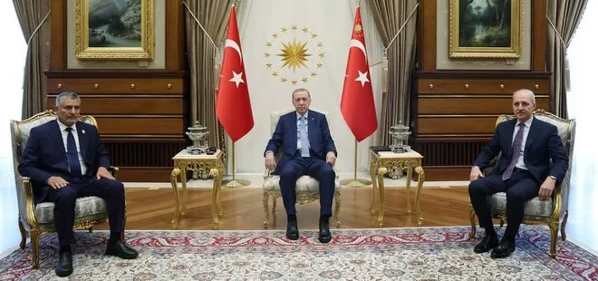 Cumhurbaşkanlığı Külliyesi'nde basına kapalı gerçekleşen kabul, yaklaşık 1 saat sürdü. Görüşmede TBMM Başkanı Numan Kurtulmuş da yer aldı.