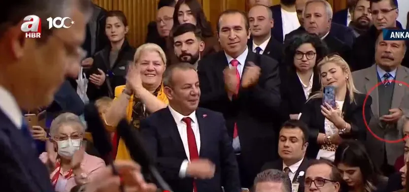 O esnada Özel'in konuşmasını dinleyen bir CHP'li memnuniyetsizliğini yaptığı el hareketiyle gösterdi. O anlar gündeme oturdu.