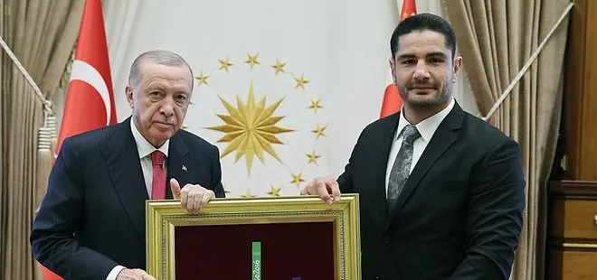 Cumhurbaşkanlığı Külliyesi'nde gerçekleşen kabulde milli güreşçi, 2016 Rio Olimpiyatları'nda elde ettiği altın madalyası ile Tokyo 2020 Olimpiyatları ve Paris 2024 Olimpiyatları'ndaki bronz madalyaların yer aldığı tabloyu Başkan Erdoğan'a hediye etti.