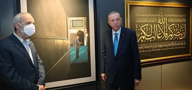 Başkan Recep Tayyip Erdoğan, Ayasofya-i Kebir Cami-i Şerifi'nin yeniden ibadete açılmasının ardından, fotoğraf sanatçıları İzzet Keribar ve Mehmet Özçay'ın çektiği fotoğraflardan oluşan "Ayasofya Fotoğrafları" sergisini ziyaret etti.