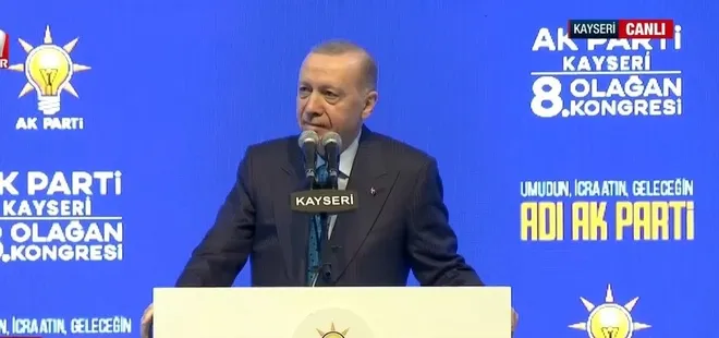 Başkan Erdoğan, Kadir Has Spor Salonu'nda düzenlenen partisinin Kayseri 8. Olağan İl Kongresi'nde yaptığı konuşmada, Konya'daki açılış programı nedeniyle geciktiğini belirterek, vatandaşlardan kusura bakmamalarını istedi.