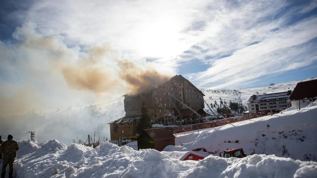 Bolu Kartalkaya'da meydana gelen otel yangınından görüntü (AA)