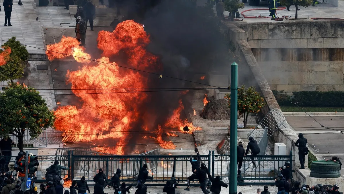 Yunanistan’da 2 yıl önce 57 kişinin hayatını kaybettiği tren kazasının yıl dönümü nedeniyle ülke genelinde düzenlenen grev ve protestolar, hayatı durma noktasına getirdi. Başkent Atina’da binlerce kişi protesto gösterisi düzenlerken, polisle çatıştı.