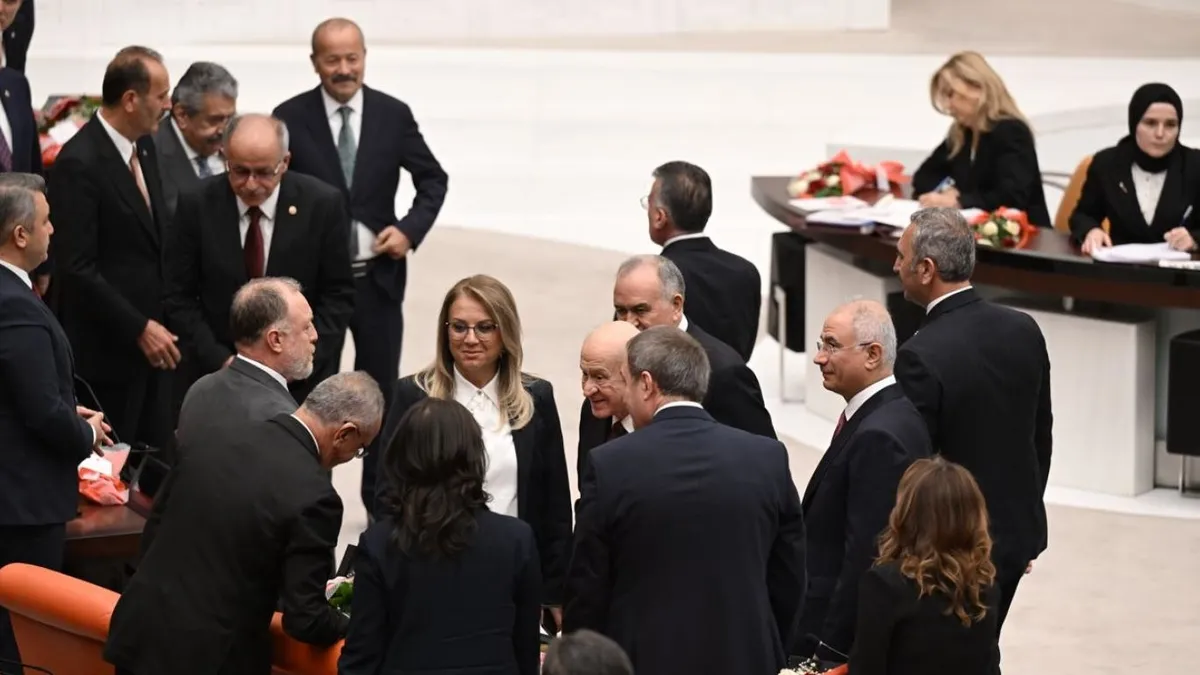 MHP Genel Başkanı Devlet Bahçeli, TBMM'nin yeni yasama yılının açılış töreninin ardından DEM Parti sıralarına gitti. Bahçeli'nin aralarında DEM Parti Eş Genel Başkanı Tuncer Bakırhan ve DEM Partili milletvekilleriyle tokalaşması gündeme oturdu.