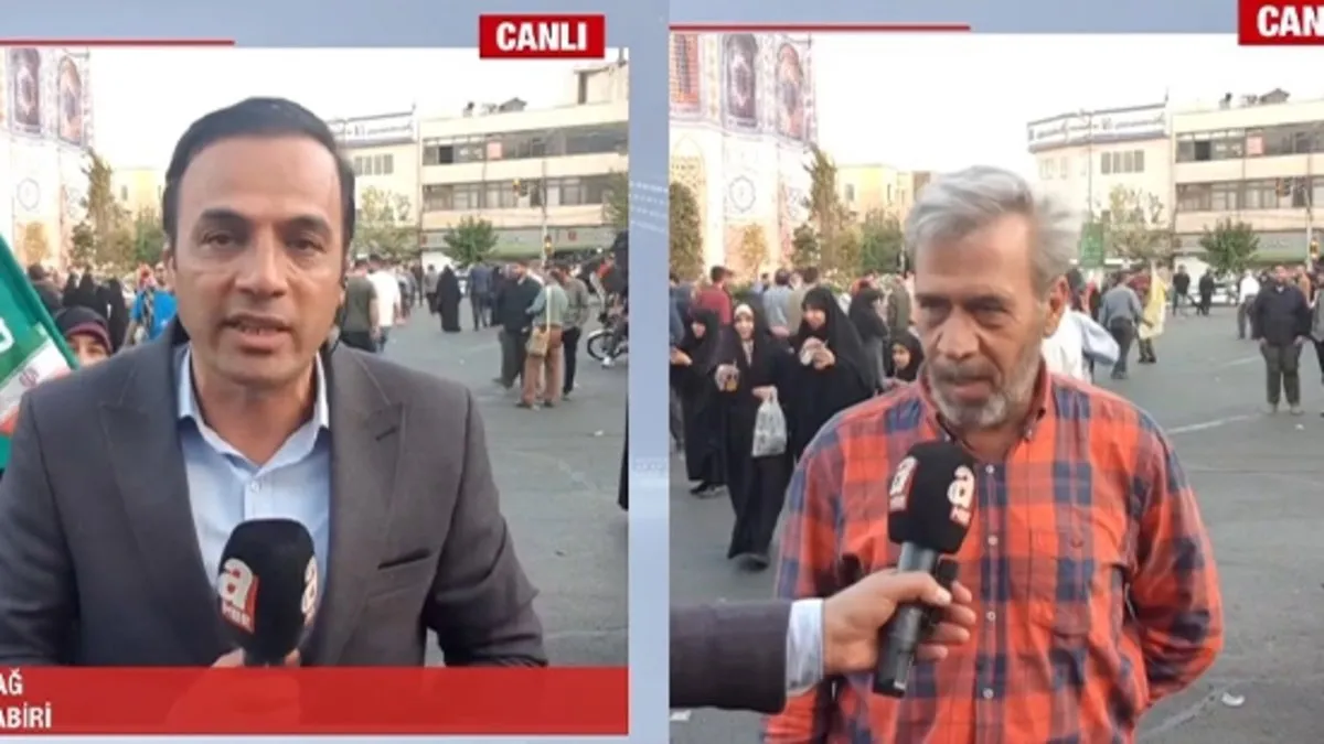Tahranlılara mikrofon uzatan Ekber Karabağ, insanların başkent Tahran'ın merkezindeki İnkılap Meydanı'na toplanarak ABD'nin düzenlediği son saldırıyı protesto ettiğini aktardı. Karabağ, Az önce İran Cumhurbaşkanı Pezeşkiyan da buradaydı.Pezeşkiyan'ın son 10 gündür İran'a karşı yapılan savaşta arka planda ABD'nin saldırdığını söyledi, İsrail'in yetersiz kalınca ABD'nin bizzat olaylara dahil olduğunu bildirdi. " dedi.