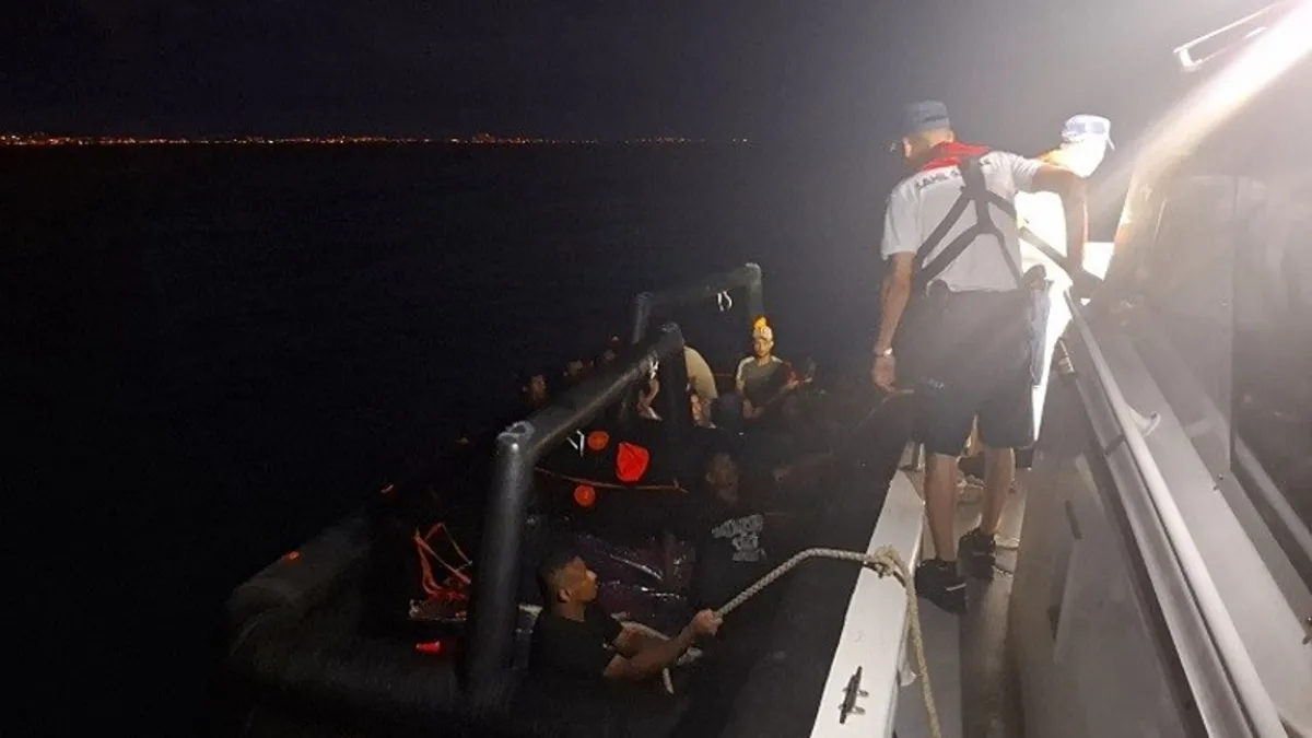 Aydın'ın Kuşadası ilçesi açıklarında, yasa dışı yollarla Yunanistan'a geçmeye çalışan düzensiz göçmenler, Yunan unsurlarınca Türk karasularına geri itildi.