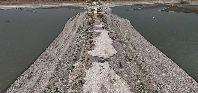 Barajda su seviyesinin düşmesiyle birlikte, baraj yapımından önce kullanılan eski İzmir-Çeşme kara yolu suların çekildiği alanda yeniden görünür hale geldi. Yürüyerek karşıya geçmenin mümkün olduğu yol, dronla görüntülendi.