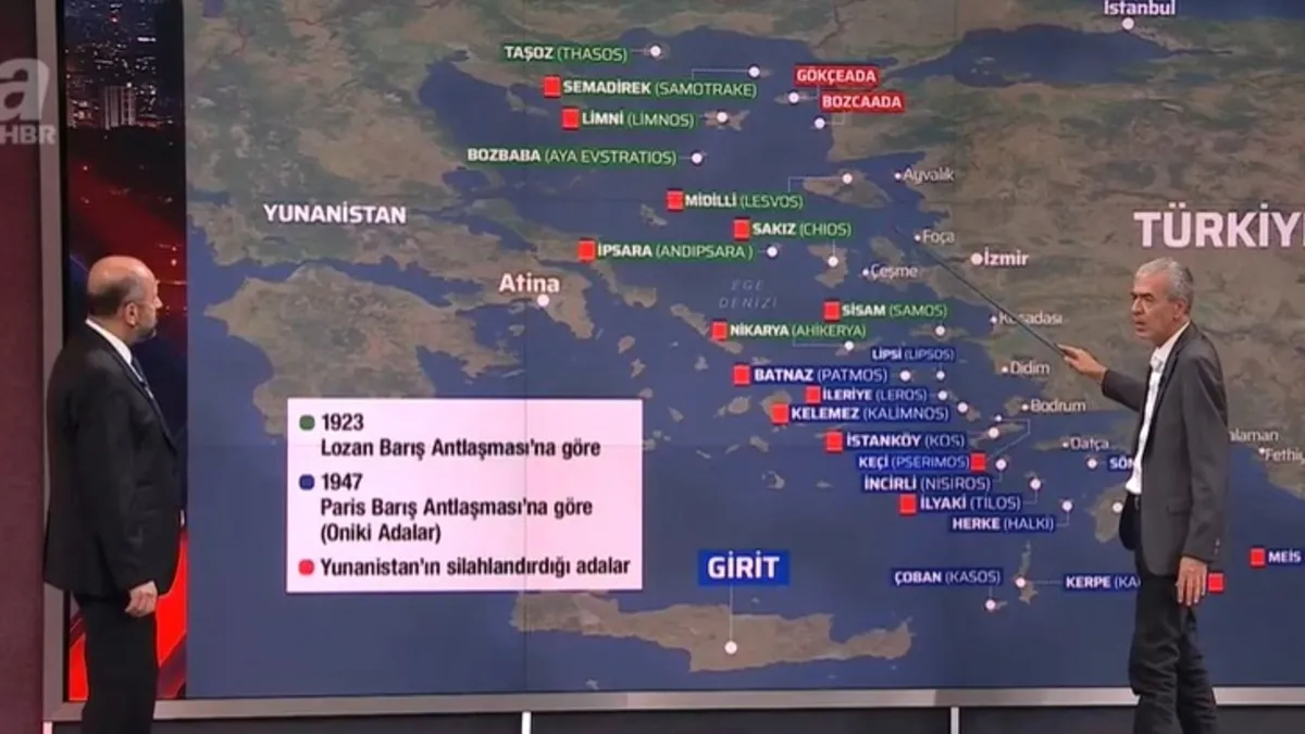 Türkiye ile Yunanistan arasında uzun yıllardır süren 12 Adalar sorunu, Atina'nın kıta sahanlığına ilişkin açıklamalarıyla yeniden tartışma konusu oldu. İki ülke arasındaki gerilimi artıran bu gelişmeye ilişkin A Haber'e konuşan uzmanlar, Lozan Antlaşması'nın ve uluslararası deniz hukukunun yeniden yorumlanması gerektiğine dikkat çekti.